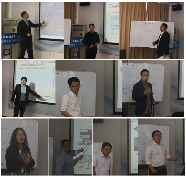 安琦教授在授课比赛前的发言中提到,作为青年教师培训基地活动的重要一环,授课大赛是提高教育教学质量和人才培养质量的重要途径,希望通过授课大赛,青年教师之间能互相学习,提升教学能力。机动学院党委书记项延训教授在随后的发言中也指出,授课大赛作为青年教师成长的重要途径,在学院各位老师的大力关注以及青年教师的积极参与下,对激励和引导青年教师重视教学和人才培养,改进和提高课堂教学方法和技能起到了重要作用,希望各位青年教师通过授课大赛,进一步掌握教学技巧,提升教学水平。之后,参加本次授课大赛的青年教师钱波,李勇,杨斌,李博,高阳,闫亚宾,黄毓辉,郭素娟,沙金,曹军以及吕文杰等11位老师逐一进行了试讲。
