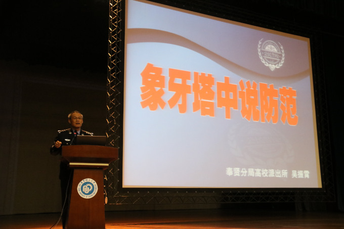 揭牌仪式后,高校派出所警官吴振霄为学院2017和2018级学生做了题为“象牙塔中说防范”的安全教育讲座。他围绕大学中常见的安全问题,以丰富生动的案例为同学们一一揭穿各种骗局,告诫同学们一定要增强自我防范意识,严守校纪校规,让犯罪分子没有可乘之机。吴警官语言风趣幽默,与同学们亲切互动,引起了他们的深深共鸣。
