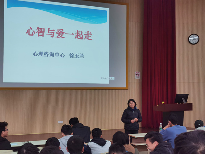 11月26日下午,校心理咨询中心徐玉兰受邀为2018级学生开展了主题为“心智与爱一起走”的讲座。讲座伊始,徐玉兰抛出几个问题让同学们思考:“为什么恋爱?爱情是什么?什么时间恋爱合适?怎样恋爱?”。同学们积极参与老师的提问,认真思考,踊跃发言,会场气氛热烈。随后,徐玉兰通过生动的案例向同学们展示了大学生恋爱经常会遇到的问题和状况并引出了讲座的主题。她向大家阐述了恋爱对于大学生的意义,从理论层面阐述了爱情的含义、特征、种类等,而后从实践层面告诉同学们如何开启一段恋爱,如何经营爱情以及如何进行失恋的心理调适。