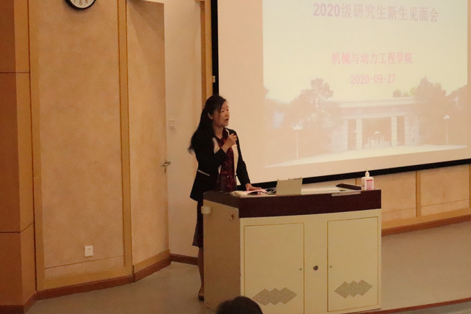 随后,杨强从学校办学历史出发,对学校、学院的组织架构进行了详细介绍,就学院优势科研方向做出系统阐述。他还向新生讲解了学院研究生的具体培养方案以及相关奖惩措施,督促大家做好各阶段的研究计划,潜心向学,将论文写在祖国大地上。他鼓励同学们继续保持学习初心,在华理学本领、长见识、开眼界。