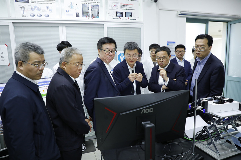 杨强对李永林一行的来访考察表示热烈欢迎。他整体介绍了学院的情况,重点介绍了能源环境装备、过程强化装备等领域的研究成果和应用,以及学院相关研究方向在科研创新方面取得的成绩。承压系统与安全教育部重点实验室副主任、我院党委委员朱明亮重点介绍了承压系统与安全教育部重点实验室的研究定位、发展历史和人员组成,并简要汇报了实验室在承压设备安全、可靠性制造等领域的创新成果。双方期待后续能深化基础研究创新合作,推动产学研深度融合。