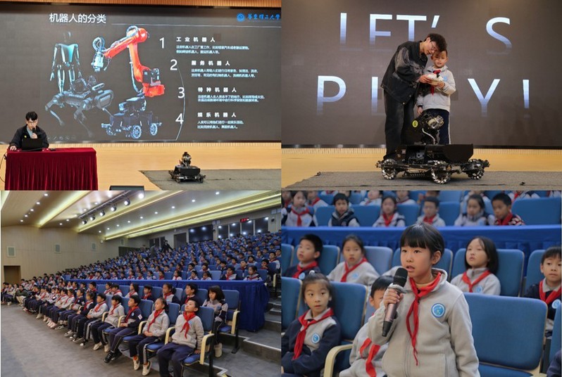 12月4日,华东理工大学机动学院本科生们走进高安路第一小学,为该校近700名小学生带来了一场以“未来·已来——机器人的奇妙世界”为主题的科普讲座,旨在激发青少年对机器人的浓厚兴趣,进一步培养他们的创新精神与实践能力。