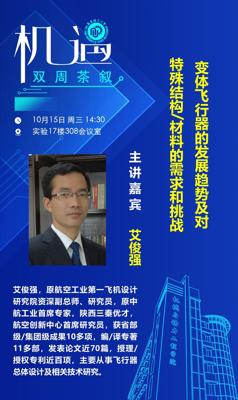 报告人:艾俊强研究员 原航空工业第一飞机设计研究院资深副总师