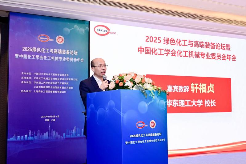 11月7日至9日,由中国化工学会化工机械专业委员会主办,华东理工大学、上海市智能感知与检测技术重点实验室共同承办的“2025绿色化工与高端装备论坛暨中国化工学会化工机械专业委员会年会”在上海举办。来自全国高校、科研院所和企业的100余名专家学者齐聚一堂,围绕绿色化工与高端装备领域的前沿技术、创新成果与发展路径展开深入探讨,为推动化工行业绿色转型与高质量发展汇聚智慧力量。