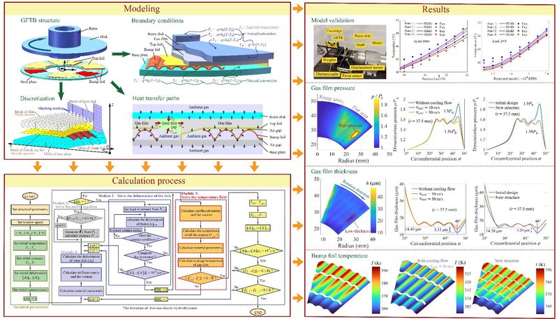 近日,我校开云官方网页版官网博士研究生吴洋(导师为安琦教授)等研究人员,在国际机械领域重要期刊International Journal of Mechanical Sciences上发表研究论文(2026, 317: 111523)。该研究针对高速涡轮机械中气体箔片推力轴承的建模难题,提出并构建了一套精确的计算方法。